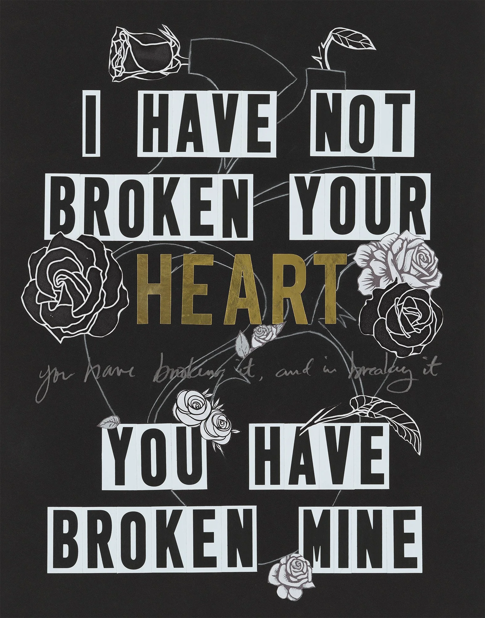 Heathcliff. Pencil, vinyl and paper ephemera on paper, 15” x 19.5”
